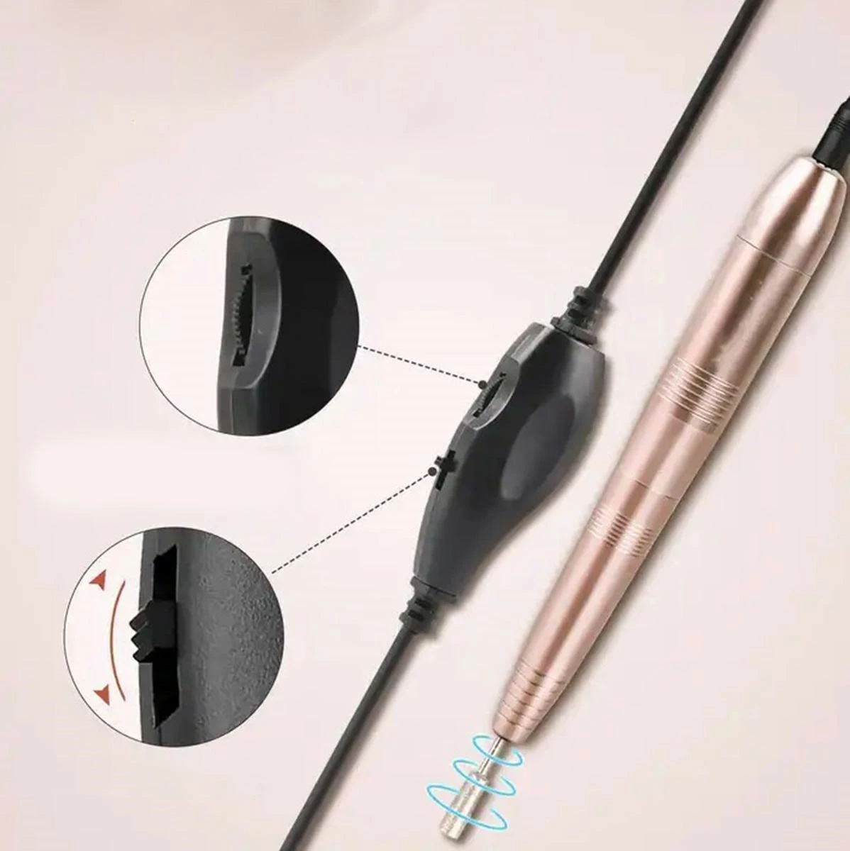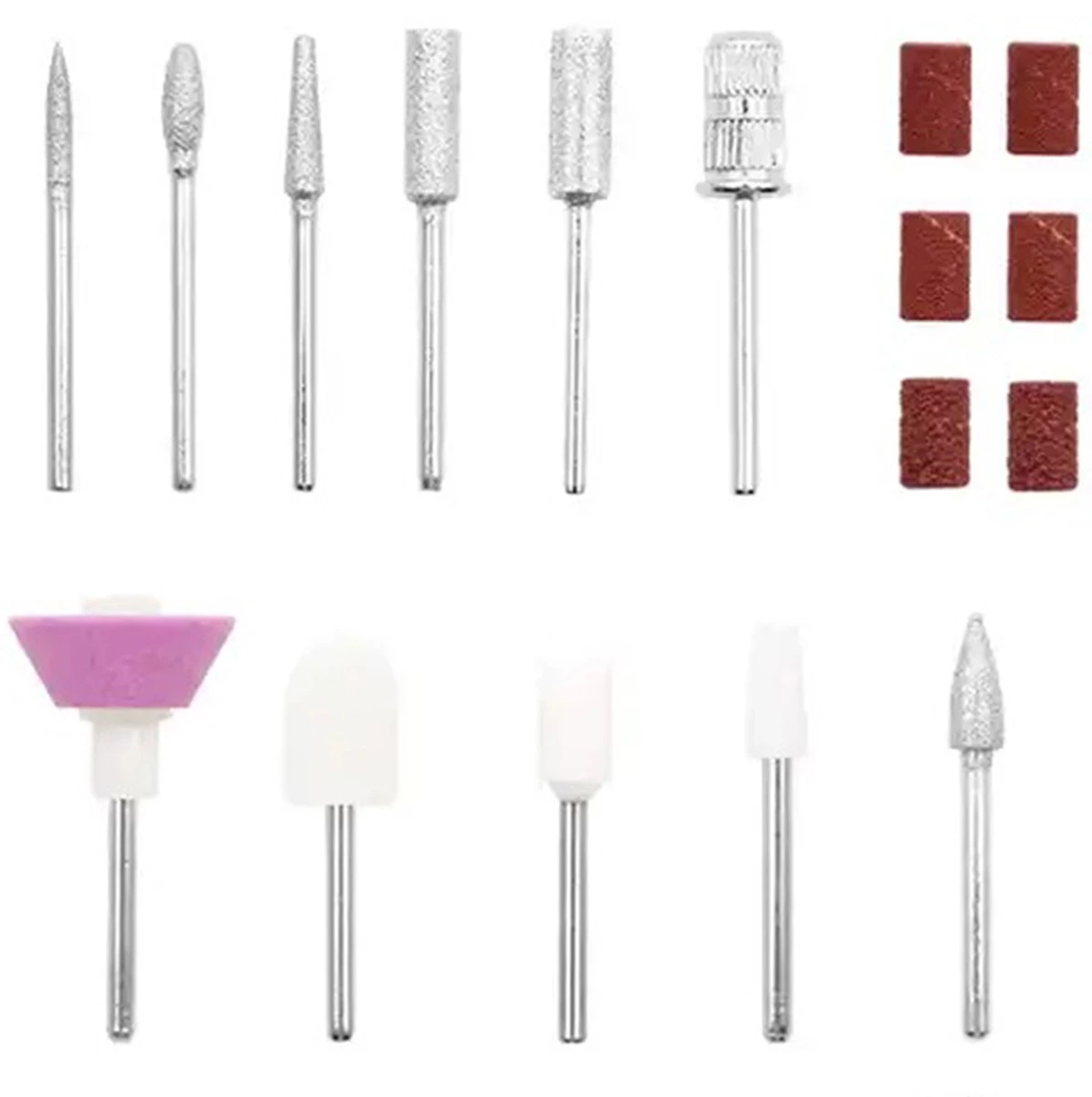 Brúska na nechty pre rýchlu a pohodlnú starostlivosť o nechty. Vďaka tejto sade sa každá žena postará o vzhľad svojich nechtov bez ďalších finančných výdavkov alebo návštev kozmetického salónu. Sada obsahuje 11 fréz (6 diamantových, 4 keramické a 1 oceľový) a 40 brúsnych pásov. Pomocou tohto zariadenia môžete nechty vyrovnať, vyleštiť a odstrániť staré vrstvy laku. br /> Pomocou tohto zariadenia môžete nechty vyrovnať, vyleštiť a odstrániť staré vrstvy nechtových špičiek. Frézka umožňuje veľmi presné gravírovanie vzorov na nechty. Umožňuje bezpečné a dôkladné odstránenie odumretej kože. Plynulo nastaviteľná rýchlosť otáčania frézky. Rýchly a spoľahlivý systém výmeny hrotov. a plynulým chodom.