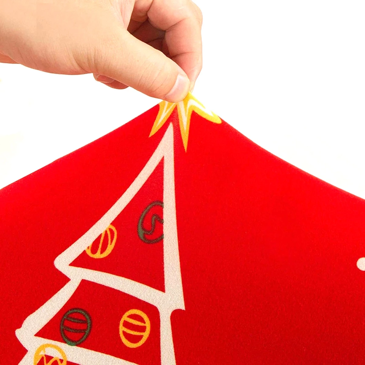 Mäkký materiál pripomínajúci zamat. Vďaka vysokej elasticite sa ľahko oblieka. Atraktívny vianočný motív (Vianočné stromčeky).