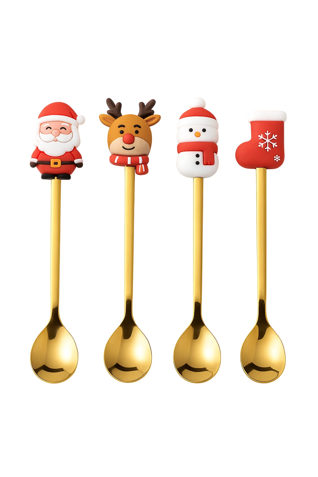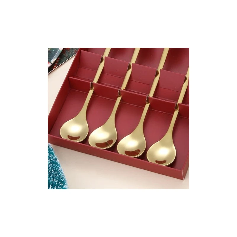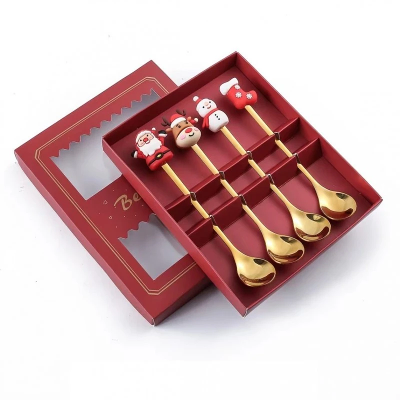 Elegantná vianočná súprava 4 zlatých lyžíc s detailnými 3D postavičkami na konci rukoväte - Santa Claus, sob, snehuliak a vianočná pančucha. Každá lyžička je precízne vyrobená a je vhodná na servírovanie kávy, čaju, dezertov alebo sviatočných sladkostí. Dodáva sa v luxusnej vianočnej darčekovej škatuľke s priehľadným okienkom - ideálna ako darček alebo štýlový doplnok sviatočného stola.