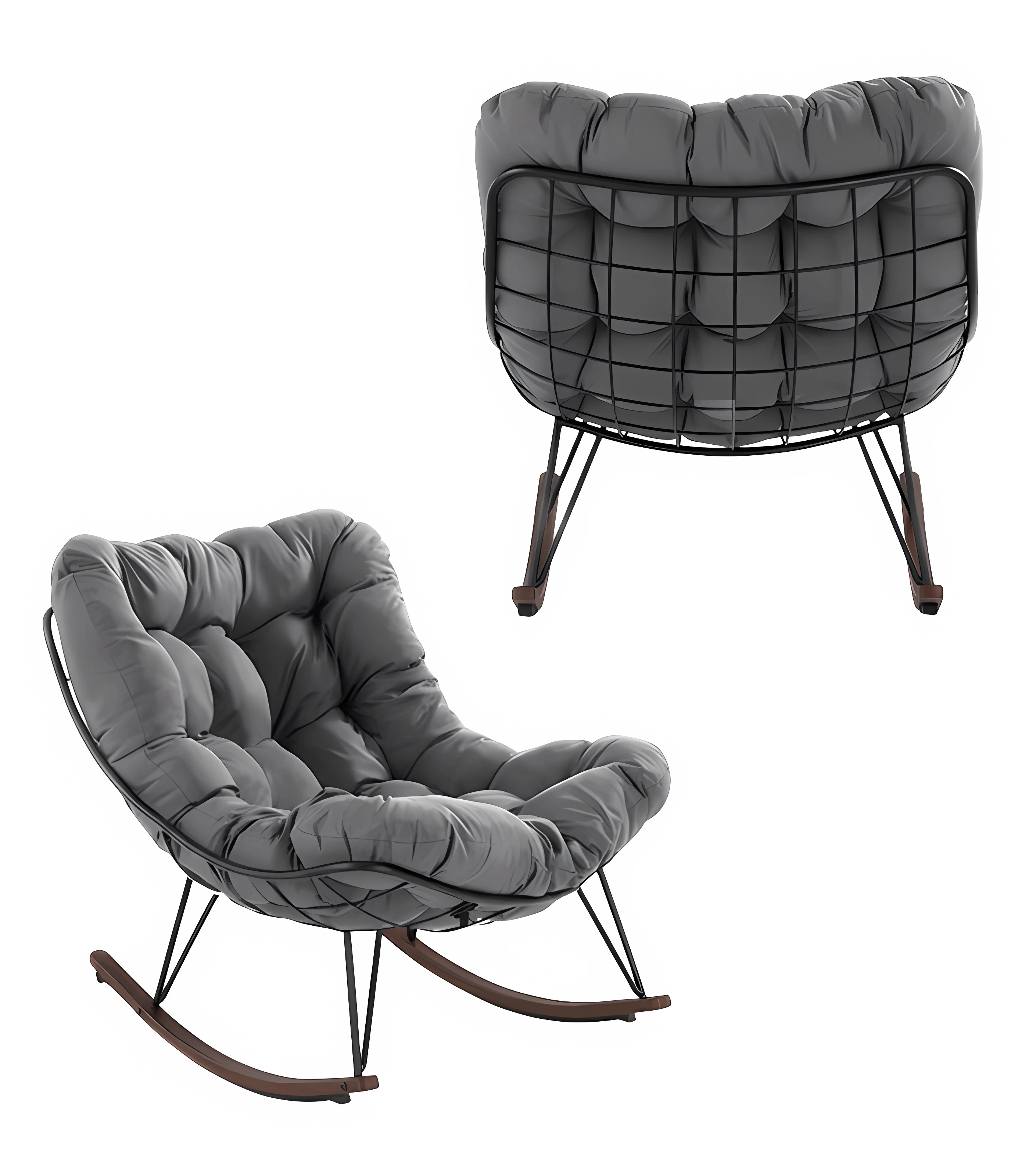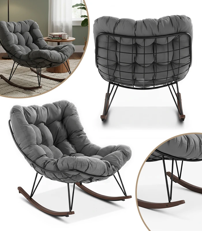 Toto štýlové a neuveriteľne pohodlné hojdacie kreslo je ideálnym miestom na relaxáciu po dlhom dni. Má široké sedadlo s dĺžkou 80 cm a mäkký vankúš, ktorý zaručuje úplné pohodlie a relaxáciu. Jemne zakrivený tvar sa prispôsobí vašej postave, podoprie vašu chrbticu a uvoľní unavené svaly. Je to dokonalý spôsob, ako sa po práci ponoriť do pokoja a relaxovať.