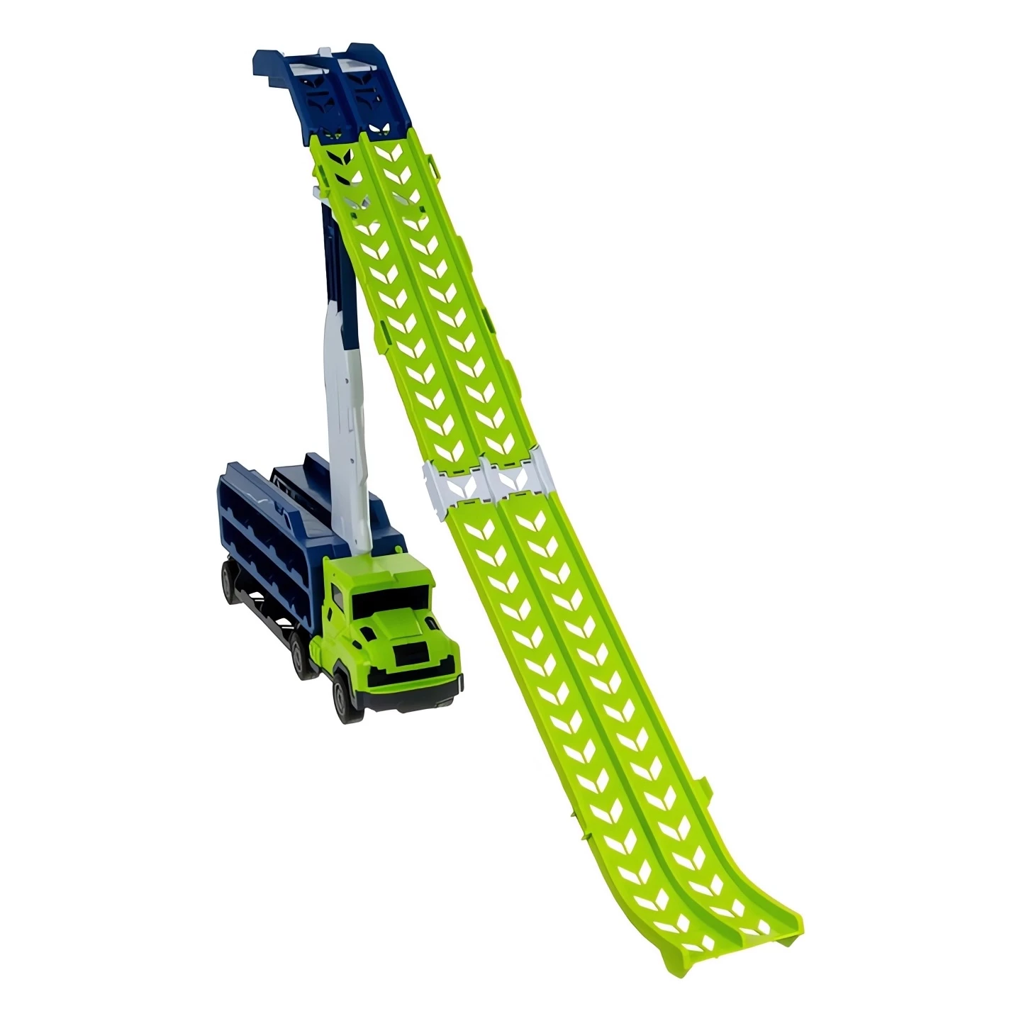 Veľká autodráha TIR so šmykľavkou a garážou je ideálnou hračkou pre malých nadšencov áut! Tento multifunkčný ťahač slúži ako prenosný kufor na autá, pretekárska dráha a garáž v jednom. Po rozložení sa z neho stane viac ako 90 cm dlhá šmykľavka na preteky malých autíčok. Súčasťou balenia je 6 farebných pretekárskych autíčok, ktoré možno uložiť do vnútra traktora.
