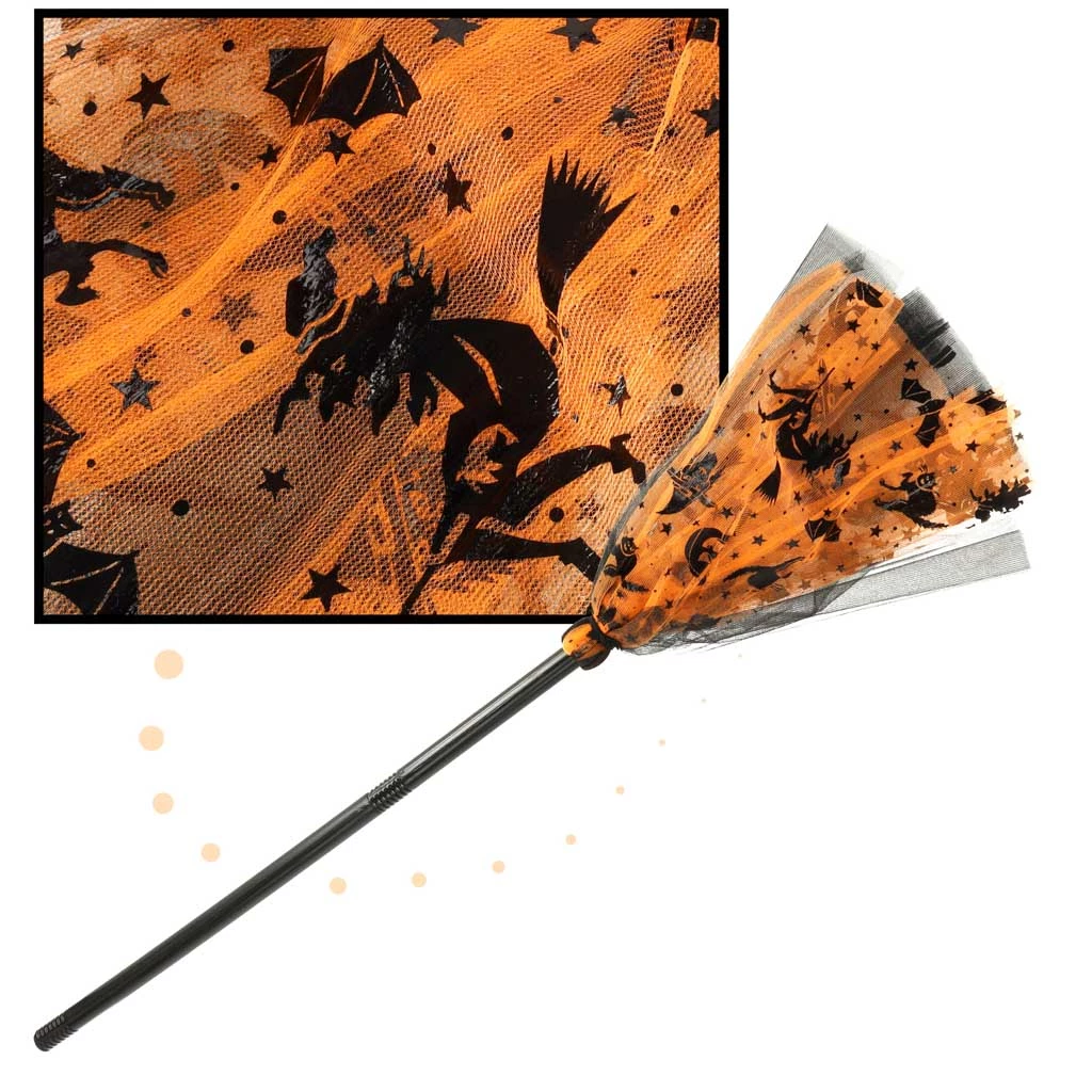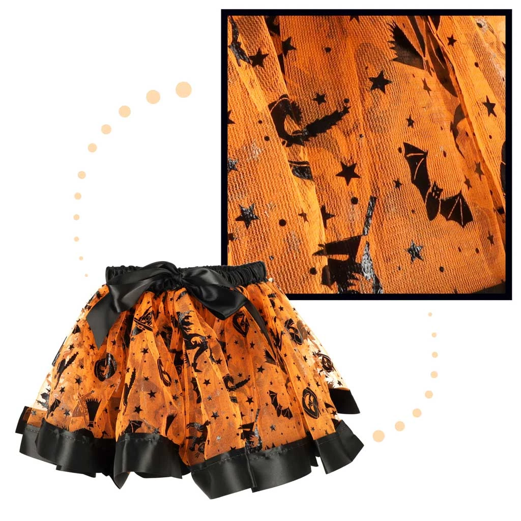 Oranžový kostým čarodejnice je dokonalým prevlekom na tematické večierky, školské plesy alebo Halloween. Sukne z tylu, čarodejnícky klobúk a plastová metla tvorí jedinečný set. Vďaka elastickej gumičke všité do sukne je kostým vhodný pre deti od 3 do 6 rokov.