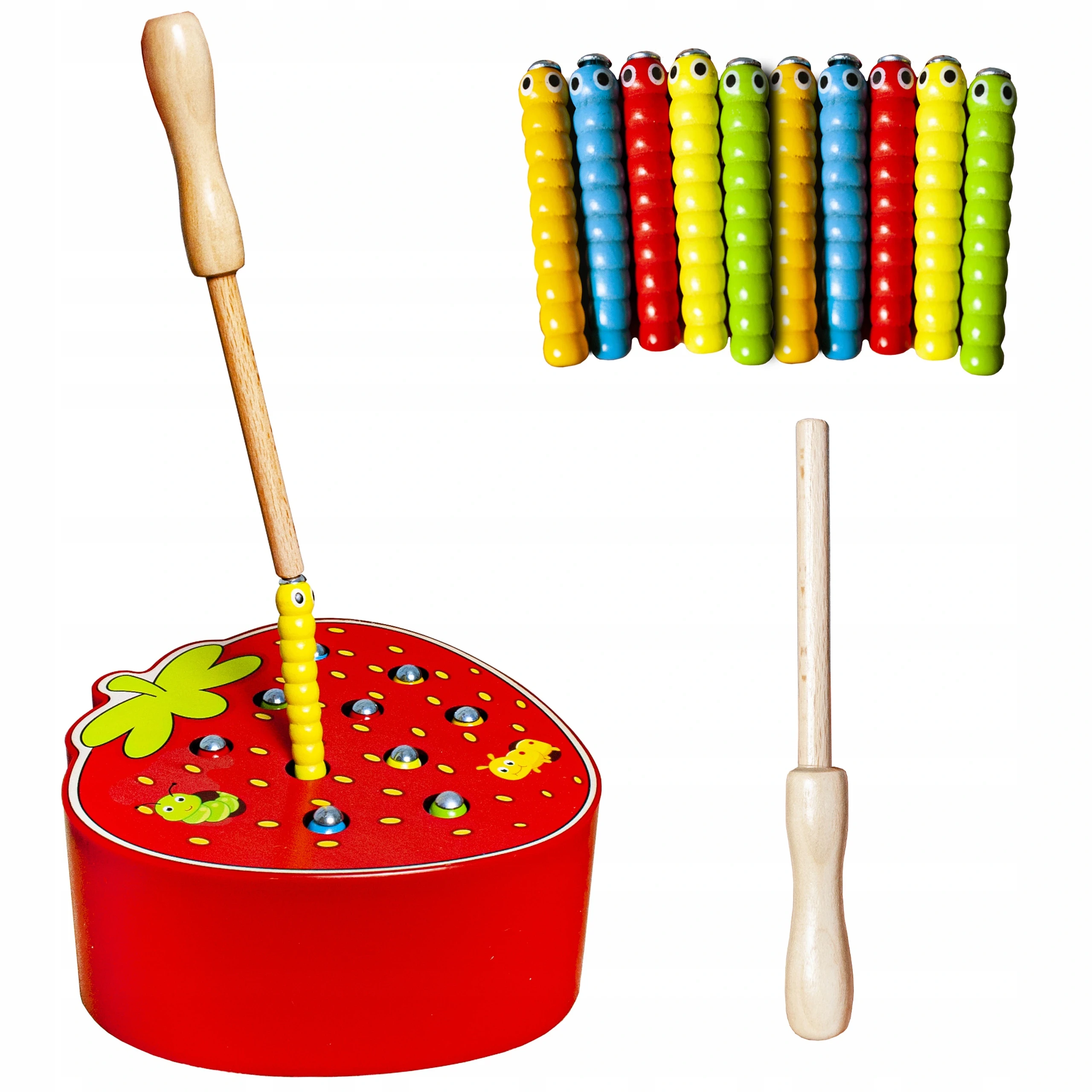 V tejto magnetickej hre deti súťažia, kto naloví pomocou magnetiek pripevnených na udičkách viac červíkov.