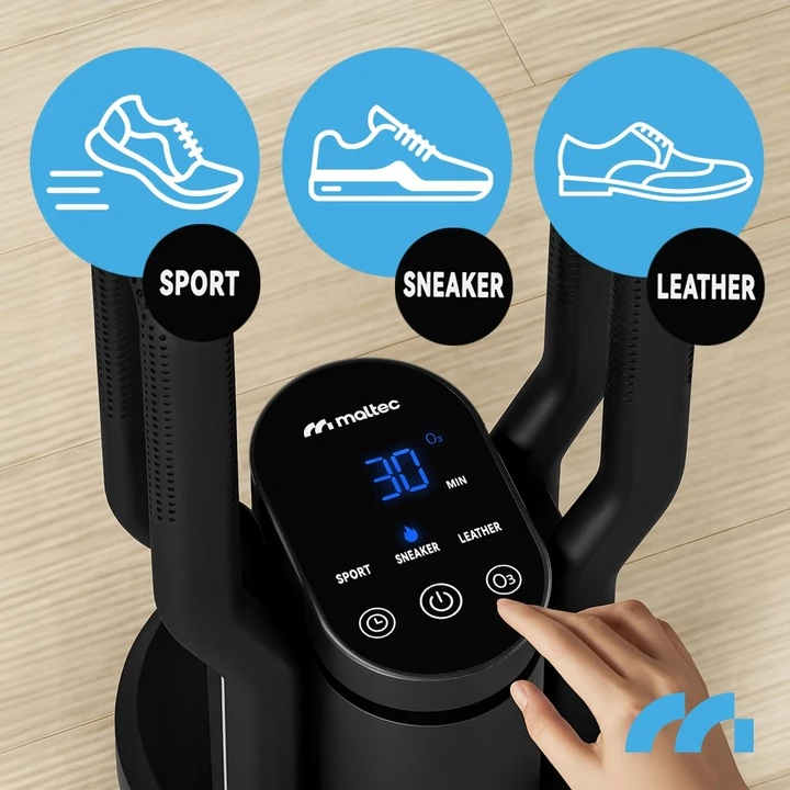 Elektrický sušič obuvi MalTec s ozónom s výkonom 200 W je určený výhradne na vysúšanie a dezinfekciu obuvi. Pri jeho používaní je nutné dbať na bezpečnostné zásady, pretože zariadenie pracuje s elektrickým napätím, teplom a ozónom. Vždy ho zapájajte iba do správne uzemnenej zásuvky a nikdy s mokrými rukami ani s poškodeným káblom. Prístroj sa pri prevádzke zahrieva, preto by nemal byť položený na horľavé povrchy ani zakrytý, aby nedošlo k prehriatiu.