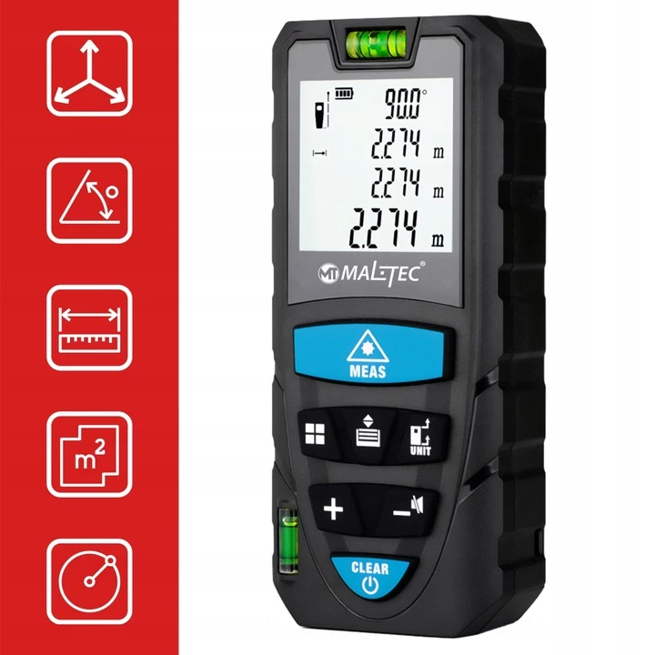 Laserový diaľkomer je revolučný merací nástroj, ktorý vám umožňuje presne a rýchlo merať vzdialenosti, plochy a objemy! Je ideálny na použitie v stavebníctve, architektúre a pri každodenných rekonštrukčných a montážnych prácach. Medzi jeho hlavné výhody patrí funkcia automatickej nivelácie a možnosť vykonávať nepriame merania pomocou Pytagorovej vety, čo zaisťuje presné výsledky aj na ťažko dostupných miestach.