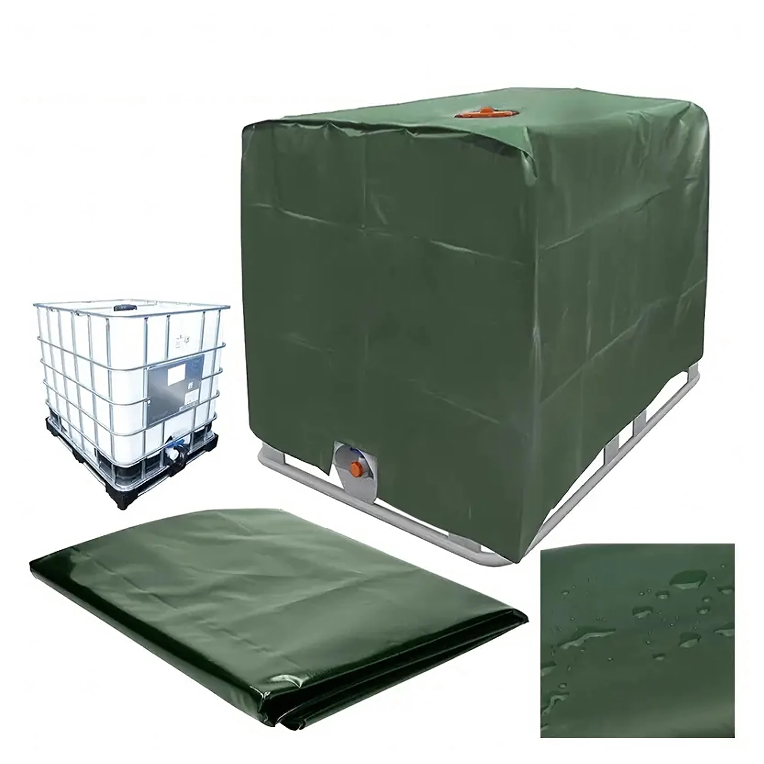Rozmery plachty sú približne 120 × 100 × 116 cm (d × š × v) s hornou časťou dlhou cca 30 cm. V zelenej farbe plachta prirodzene zapadne do prostredia a pritom poskytne IBC kontajneru spoľahlivé prekrytie v každom ročnom období.