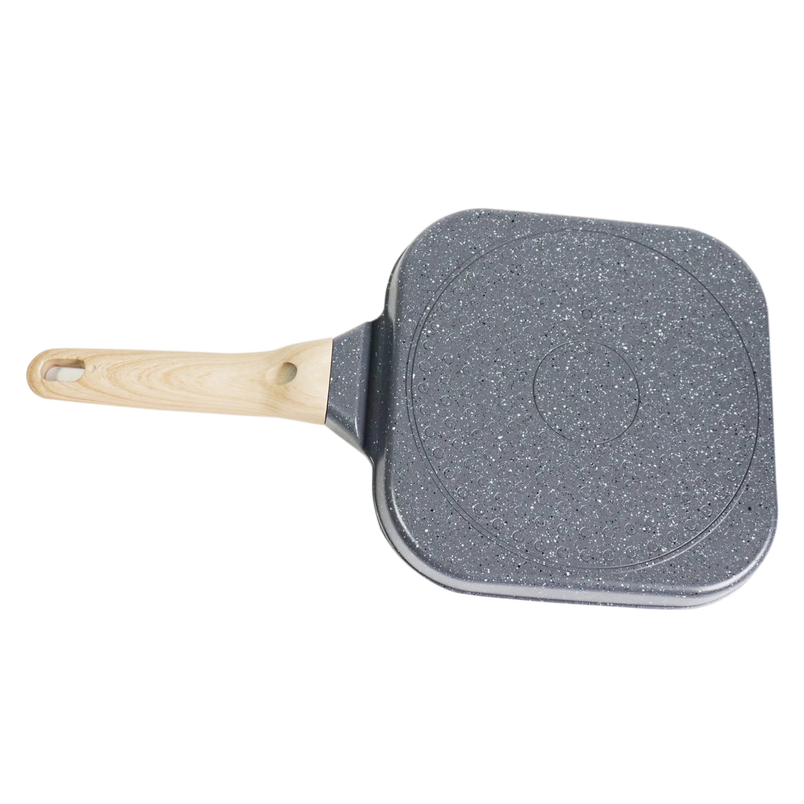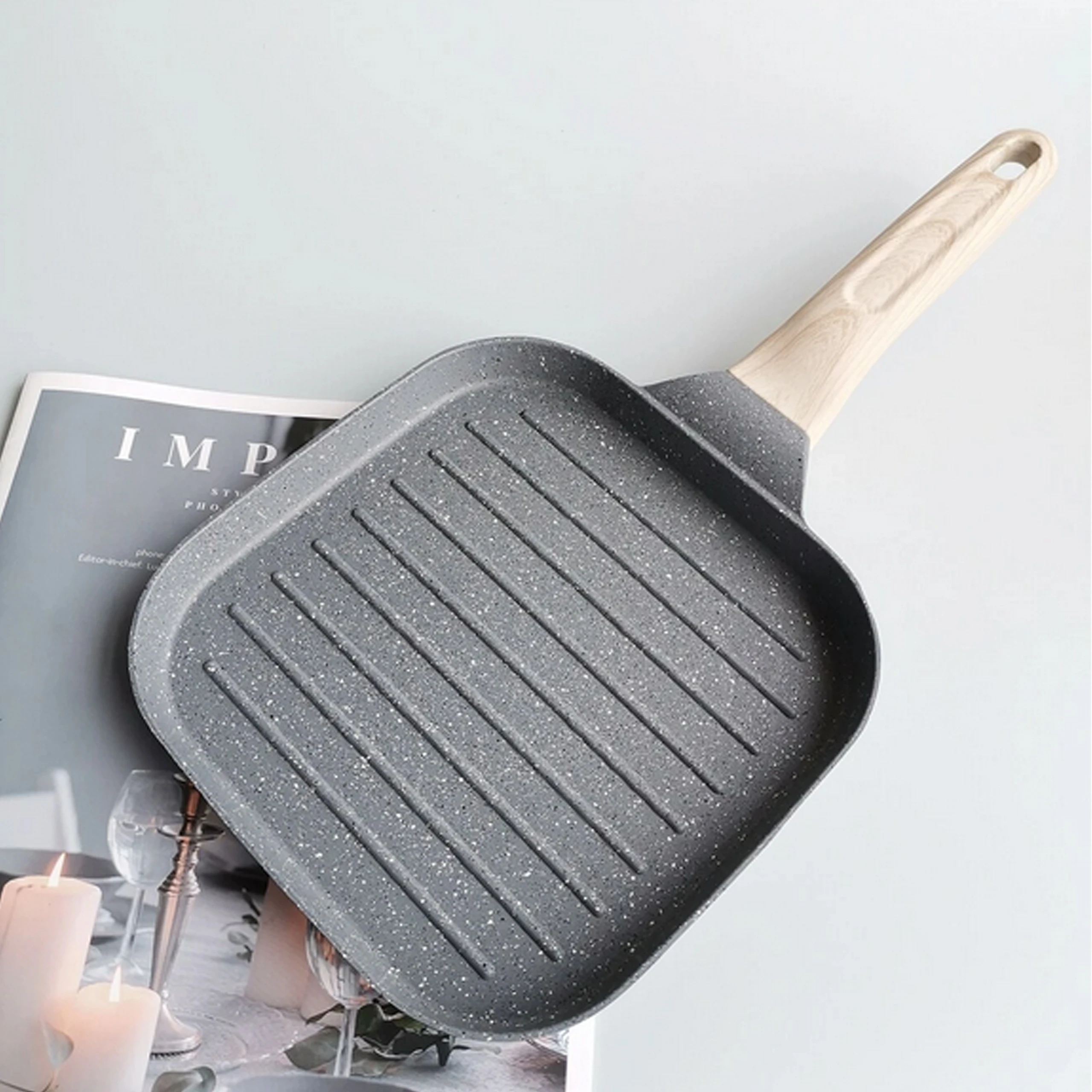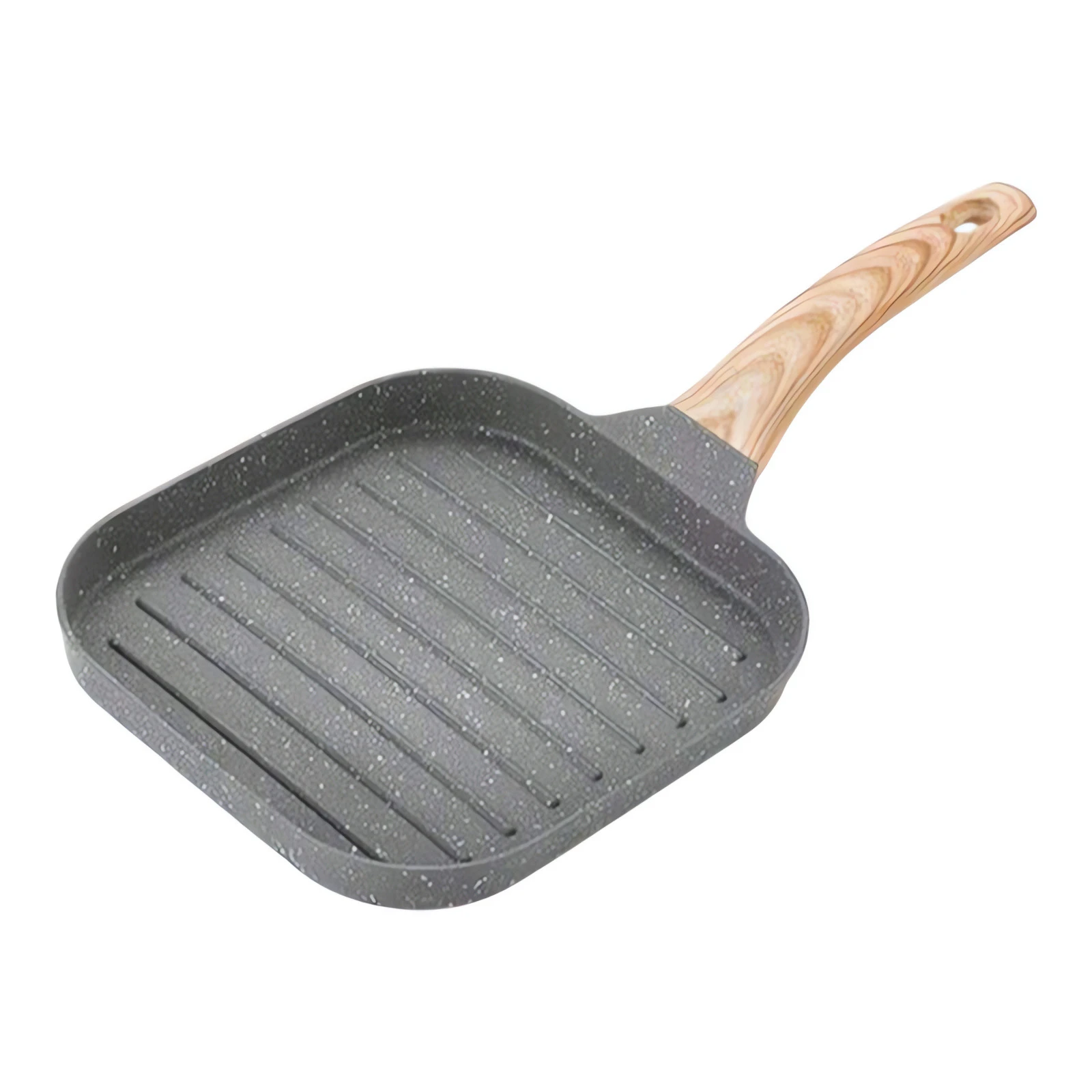 Vysoko kvalitný nepriľnavý granitový povrch zabraňuje pripáleniu, uľahčuje čistenie a umožňuje varenie s minimálnym množstvom tuku. Povrch neobsahuje PFOA. Hliníkové telo panvice sa rýchlo a rovnomerne zahrieva, vďaka čomu je energeticky úsporná a šetrí čas a priestor na varnom paneli. Po použití môžete panvicu umiestniť do umývačky riadu. Panvica je odolná voči teplu do 180 °C a je vhodná na plynové, elektrické, sklokeramické, halogénové a indukčné varné dosky. Ergonomická, nešmykľavá kovová rukoväť s povrchovou úpravou imitujúcou drevo zaisťuje pevný a bezpečný úchop. Elegantný sivý dizajn doplní každú kuchyňu a je vhodný aj na estetické servírovanie jedál.