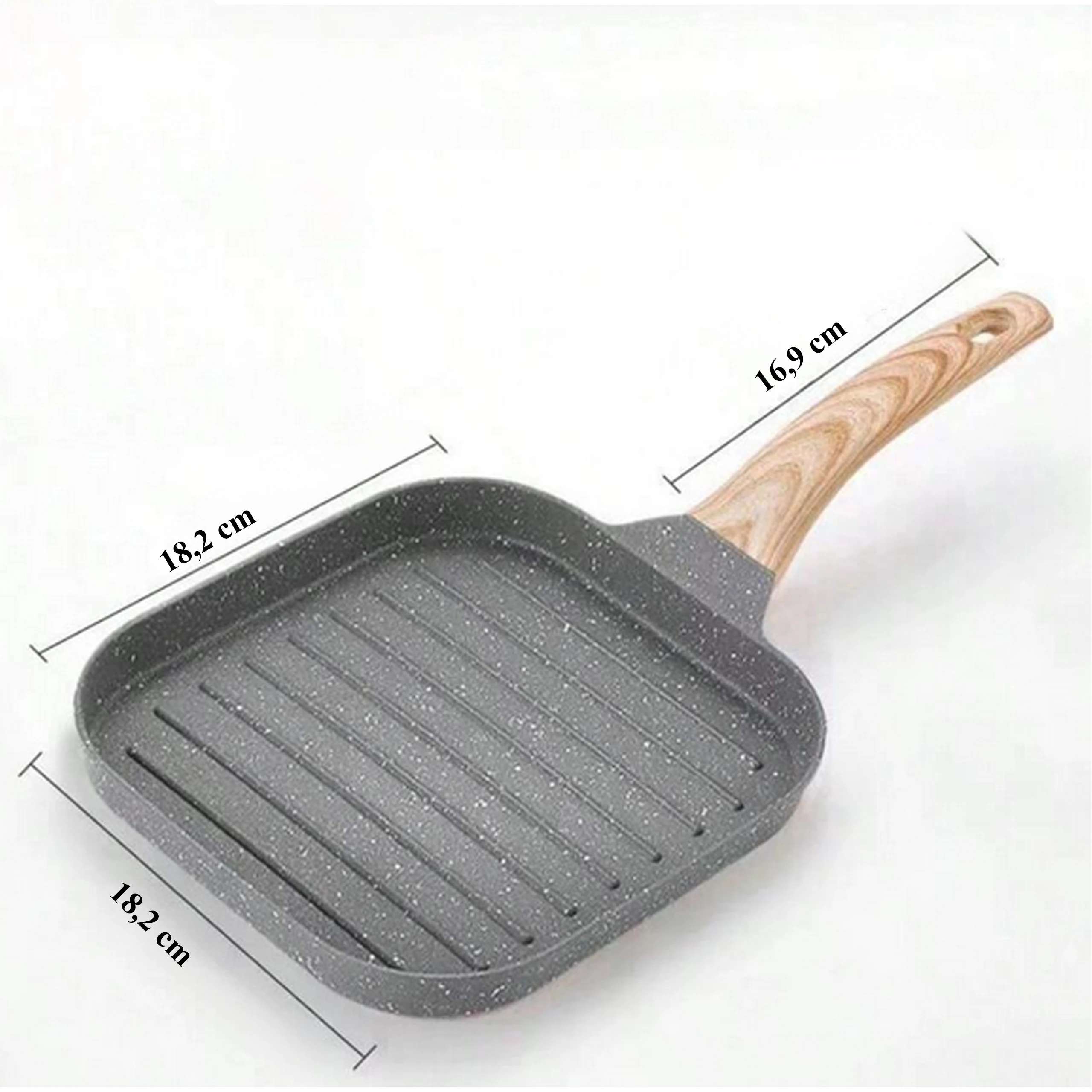 Kompaktná grilovacia panvica RealG RC-K-628 je určená na každodenné varenie doma aj na cestách. Štvorcová plocha s rozmermi 18,2 × 18,2 cm a nízkym profilom 2 cm je ideálna na rýchle raňajky a večere. Celková dĺžka 34,8 cm s rukoväťou uľahčuje manipuláciu a umožňuje pohodlné servírovanie priamo na tanier. Vďaka svojej univerzálnosti môžete panvicu použiť na prípravu vajec, palaciniek, zemiakových plackov, mini omeliet a iných lahôdok.