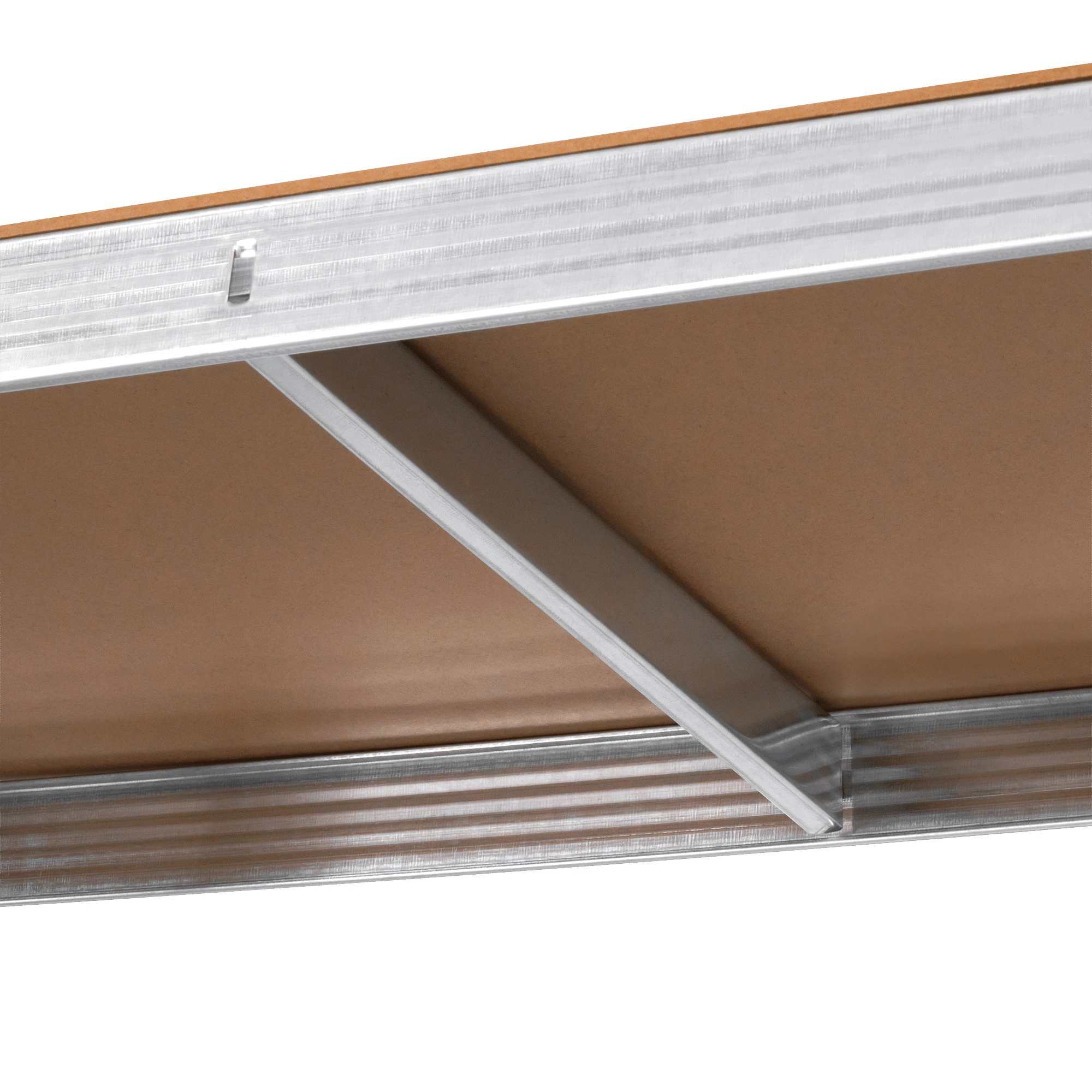 Vďaka svojej pevnej konštrukcii z pozinkovanej ocele je dielenský regálový systém Rebel Tools vhodný na skladovanie ľahkých aj ťažkých predmetov. Obsahuje 5 robustných políc, každá s nosnosťou 175 kg. Aby ste minimalizovali riziko zlyhania políc, rozložte hmotnosť rovnomerne na police.