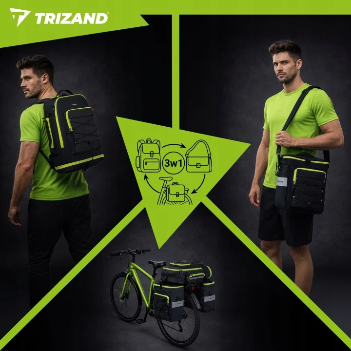 Vodoodolná cyklistická taška s veľkým objemom je ideálnou voľbou pre dlhšie výlety aj každodenné dochádzanie do práce. Praktické vyhotovenie 3 v 1 umožňuje použitie ako taška na nosič, batoh alebo taška cez rameno, čo zaručuje maximálnu flexibilitu pri preprave vecí.