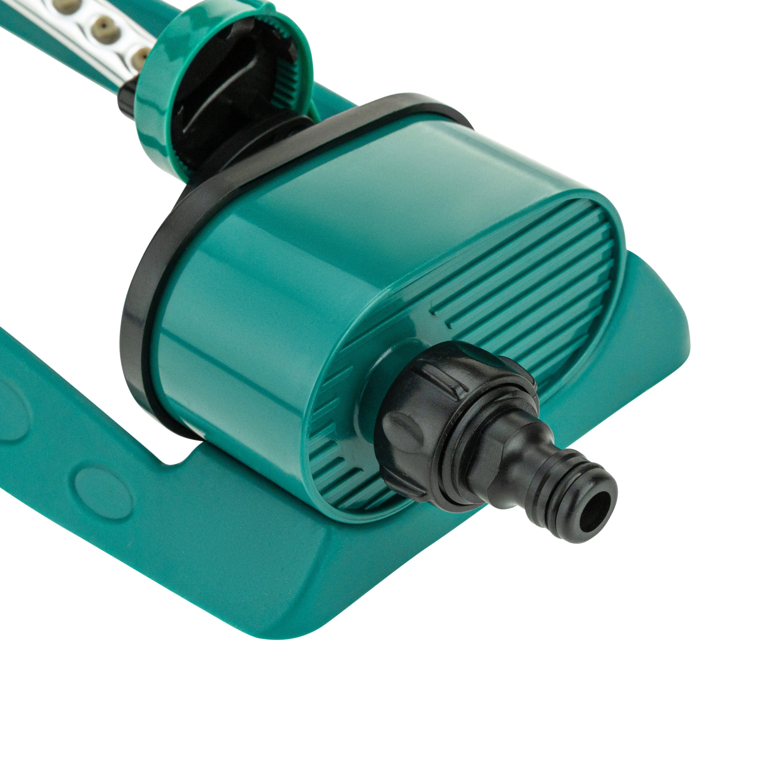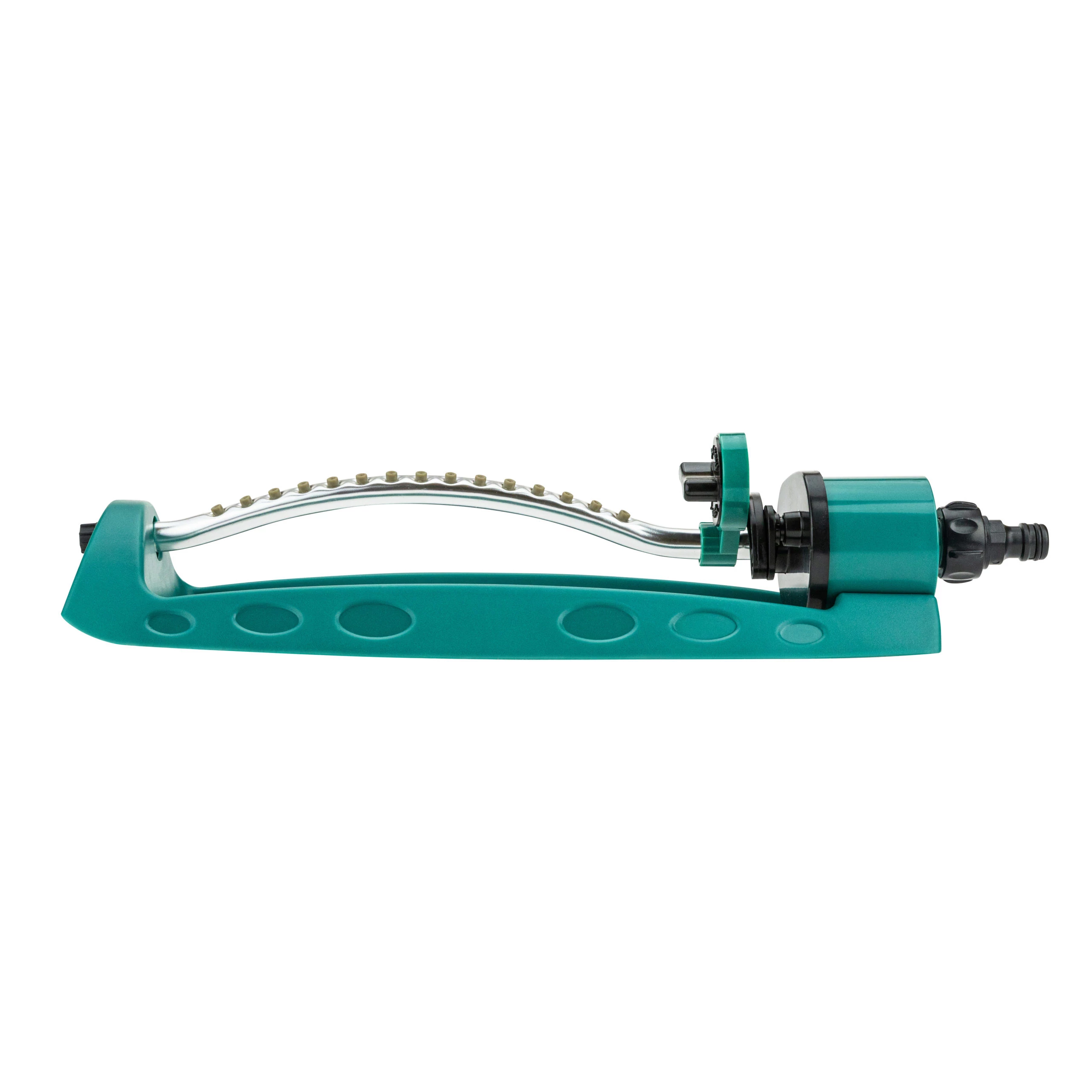 Naša ponuka obsahuje oscilačný záhradný zavlažovač. Vyrobené z vysoko kvalitného plastu a hliníka. Zavlažovač má stabilnú konštrukciu, ktorá je umiestnená priamo na zemi bez nutnosti zatĺkania. Pomocou gombíka je možné navyše nastaviť pracovnú plochu a smer zavlažovania. 15 trysiek umožňuje zavlažovanie na vzdialenosť cca 10 m a plochu cca 350 m2 v závislosti od tlaku vody.