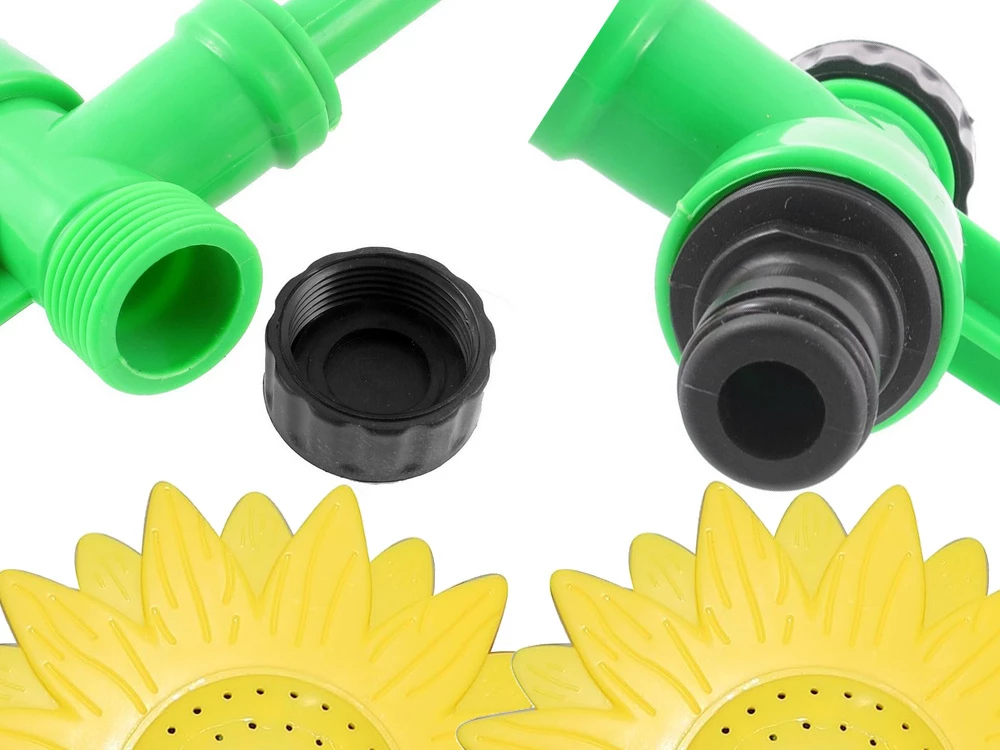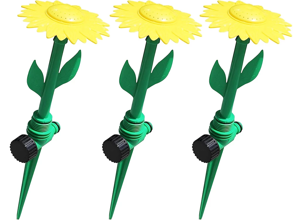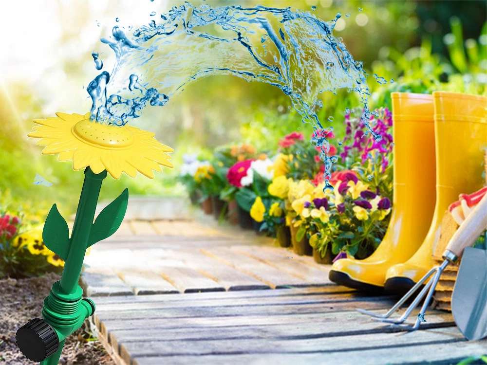 Automatický záhradný zavlažovač v tvare kvety. Pevná základňa (zarazená do zeme pomocou hrotu šípu) zabraňuje prevráteniu postrekovača vplyvom tlaku vody. Veľká rozprašovacia tryska na hornej strane zariadenia. Veľmi jednoduché použitie, vyžaduje iba pripojenie hadice a odskrutkovanie vody. Určené pre záhradnú hadicu s 1/2" koncovkou.