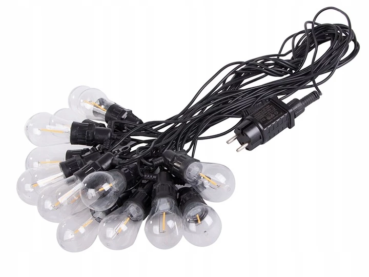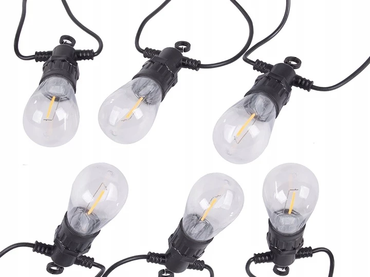 Girlanda je vybavená krásnymi štýlovými žiarovkami, žiariacimi teplou farbou, ktoré rozžiaria okolie jemným príjemným svetlom.
