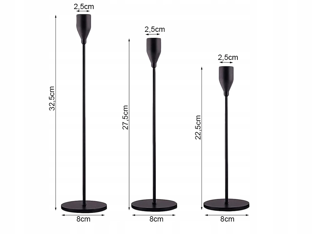 Sada svietnikov je skvelou voľbou pre rodinné oslavy, romantické večere, sviatočné dekorácie alebo svadobnú výzdobu. Môžete ich použiť s klasickými stolnými sviečkami, LED sviečkami alebo dekoratívnymi vložkami. Ich štíhly tvar nezahltí interiér, ale decentne ho obohatí.